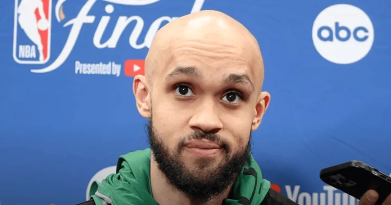 6月12日:凯尔特人球员德里克怀特接受媒体采访,谈到小牛球员卢卡东契奇。