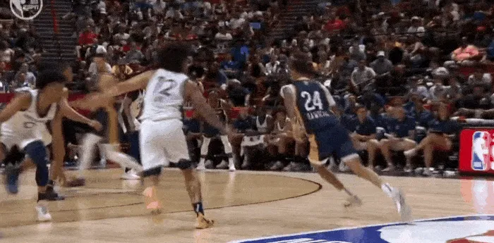 7月13日,NBA夏季联赛森林狼队与鹈鹕队的比赛正在进行。