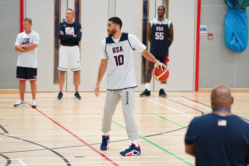 7月19日讯今日,美国男篮官网晒出了一组全队训练照片。